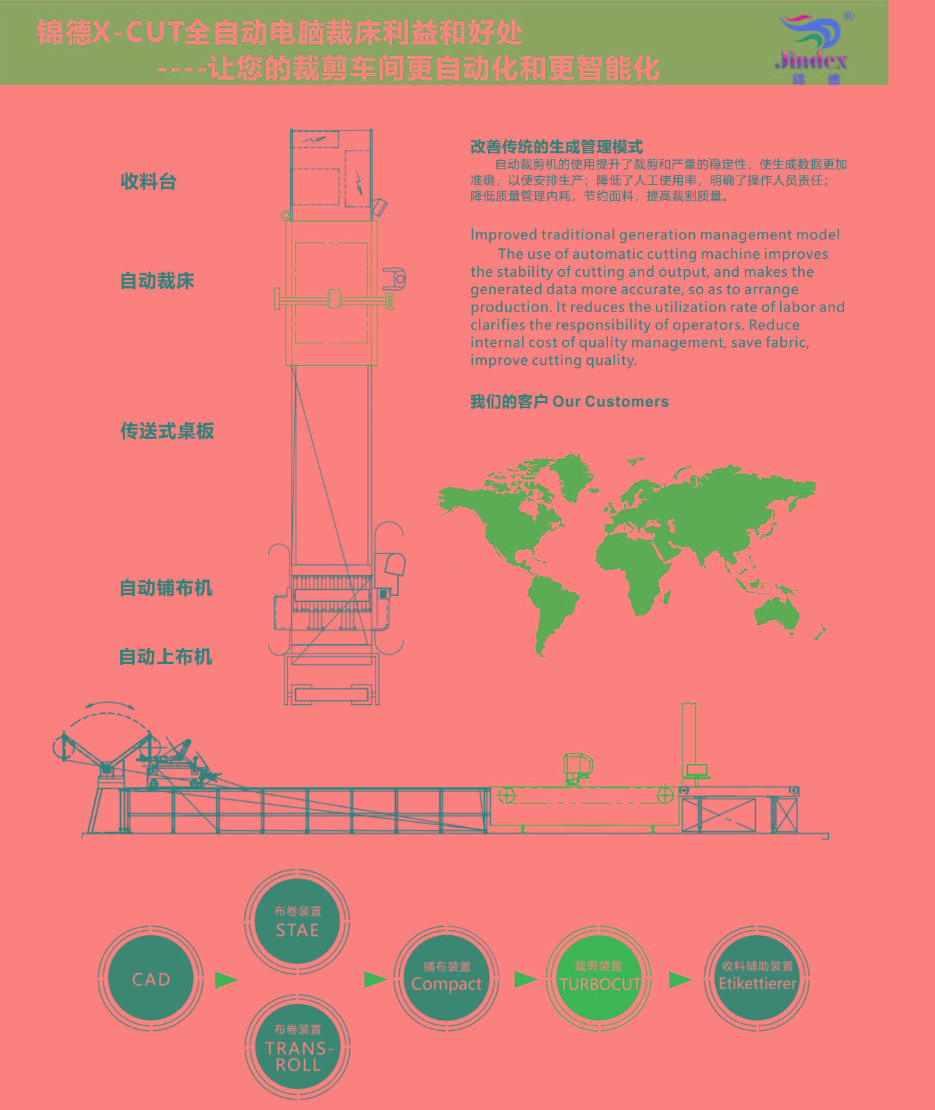 錦德智能裁剪系統(tǒng)為紡織服裝行業(yè)的打樣和小批量生產(chǎn)提供專業(yè)解決方案。配備...